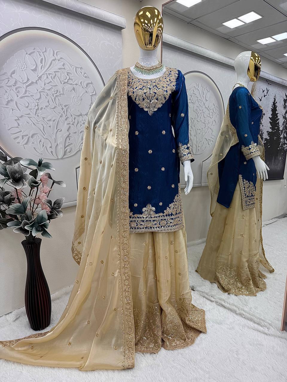 Samaira Shine Sharara Set – Heavy Satin with Sequins Embroidery