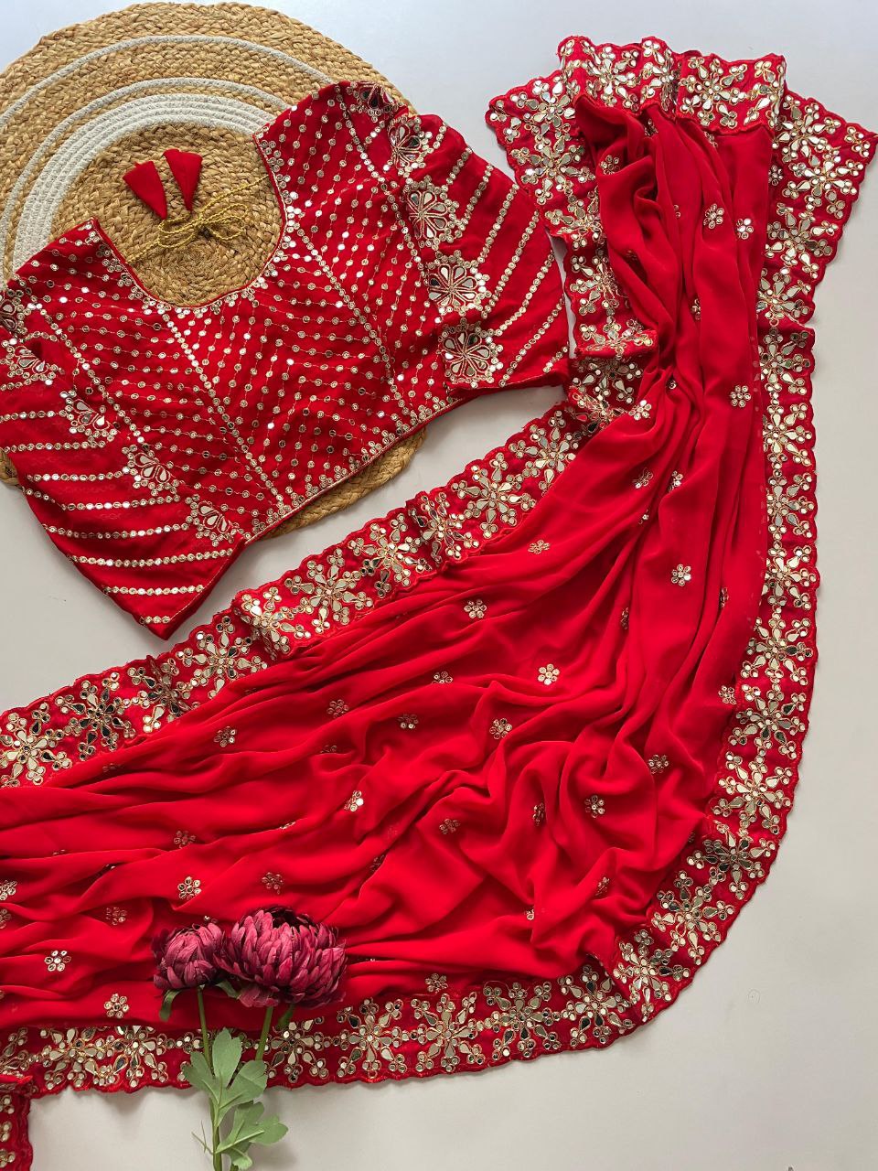 Original Mirror Work on Lace Border & Blouse Sleeves